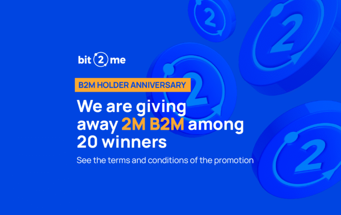 Η Bit2Me λανσάρει περιοδικά και αποκλειστικά προωθητικές ενέργειες στις οποίες μπορούν να συμμετάσχουν μόνο οι κάτοχοι $B2M. Εδώ μπορείτε να δείτε μερικές από τις πολλές καμπάνιες που πραγματοποιήθηκαν τα τελευταία χρόνια